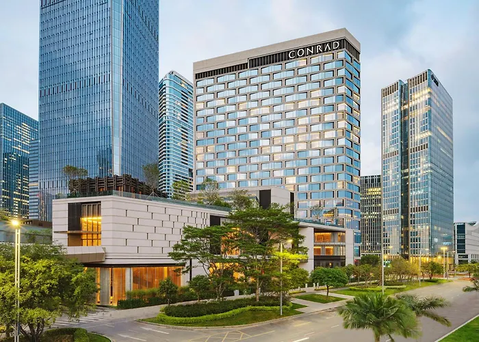 Com piscina em ambiente fechado, o Conrad Shenzhen Hotel de 5 estrelas está localizado no distrito Nanshan 3 km de do Parque de Zhongshan. Este hotel de Shenzhen dispõe de 298 quartos e de confortos como restaurante.